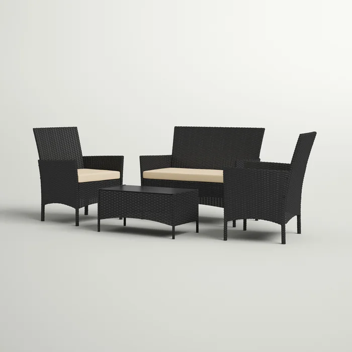 Does spending quality time with your family fill your heart with joy? Gather on this Auguste 4 Piece Rattan Sofa Seating Group with Cushions, and start your day filled with happiness! Make yourself comfortable: say goodbye to narrow, cramped chairs! With outwardly curved armrests and a slightly inclined backrest that forms a 90° angle with the seat, the chairs and loveseat sofa in this garden furniture set adapt to the shape of your body to support you comfortably. Enjoy leisure time outdoors set the garden furniture set in the garden or yard to make it a relaxing spot. You can read a book on a lazy afternoon, chat with your friend under a little shade, or enjoy a pleasant summer breeze poolside. All can happen with this set of patio furniture! Songmics notes: – to ensure the longevity of the product, it is recommended to cover it during bad weather or winter. – to extend the lifespan of the product, please clean it with a damp cloth only. – for safe use, please do not overload it. – during assembly, first loosely align all screws with the corresponding pre-drilled holes, then tighten the screws one by one. – if the product wobbles, adjust the screws as necessary to stabilize it.