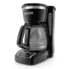 Brew your daily coffee fast with the BLACK+DECKER 12-Cup* Programmable Coffeemaker. QuickTouch Programming buttons make it easy to set the 24-hour auto brew feature and shave some time off of your morning routine. Other useful features include Sneak-A-Cup Technology, the 12-cup* Duralife glass carafe, and a washable brew basket. *Cup equals approximately 5 ounces (varies by brewing technique) Black+Decker and the Black+Decker logo are trademarks of The Black & Decker Corporation and are used under license.