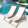 This classic folding sling chair is just what you need to spend cool spring evenings, or warm summer evenings, enjoying good food and conversation with a buddy or loved one. This item is a set of 2, all made out of eucalyptus hardwood with an oil-based satin finish, creating a more calming atmosphere for your outdoor environment. The lounge chair is great for use in the patio, porch, backyard, garden, parks, picnic areas, camp, or even inside your home. Its space-saving build and convenient folding capability allow for easy transportation and storage. This outdoor essential will be a decorative mainstay at your home for years to come. Made of high-quality eucalyptus wood, with an open slatted design. The polished surface is easy to clean with a damp cloth. This sling chair is consists of 2 pieces chair and will make a great addition to your garden, terrace, or patio for chatting with family and friends or just enjoying the weather. No assembly is required, fold apart, and ready to use immediately. Just unfold and the foldable sling chair is ready to use. The folding sling chair is easy to store when not in use and compact enough to bring for travel. Our lounge chair has 3-level. Customize your comfort level with unlimited reclining positions including a lay-flat option.