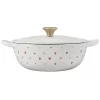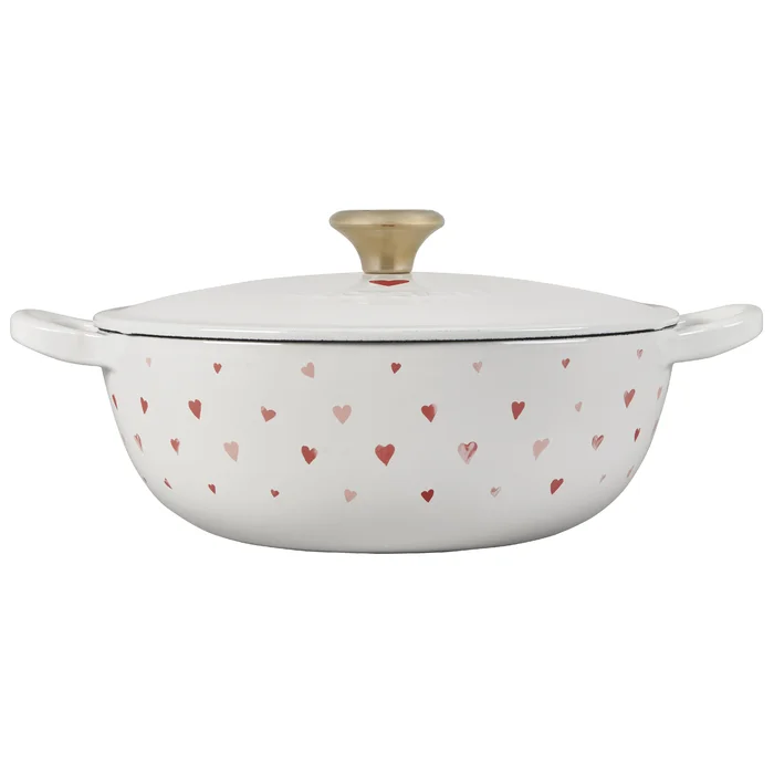The Heart’s Collection soup pot/chef’s oven is adorned with an artisanal hand-applied heart applique on a classic white background and finished with an elegant brushed signature light gold knob that is sure to warm hearts.