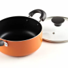 - Nonstick coating for food release and lasts long; tempered glass lid to view food