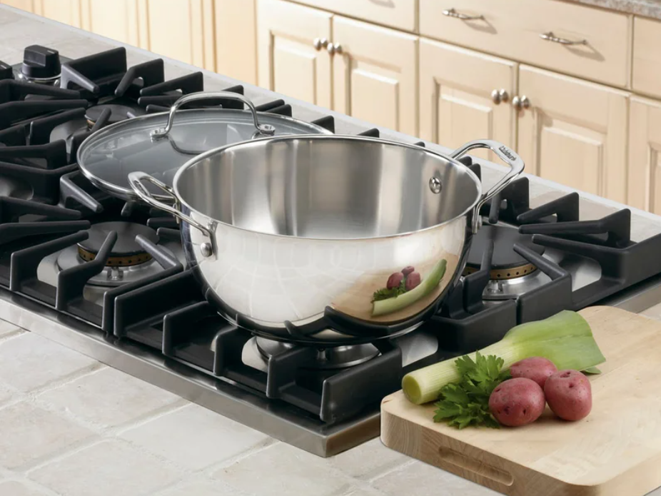 The soup pot is perfect for hearty soups and stews or one-dish meals. On the stove top, the aluminum encapsulated base maintains even heat distribution, eliminating hot spots. The riveted, comfort-grip stainless steel side handles make placing large casseroles into the oven, and lifting them out, safe and easy. The attractive glass cover locks in flavors, seals in warmth and displays the tempting dish inside. The stainless interior does not react with food so flavors stay true and tasty, plus the brilliant stainless exterior makes this pan a perfect serving piece for dinner or buffet tables.