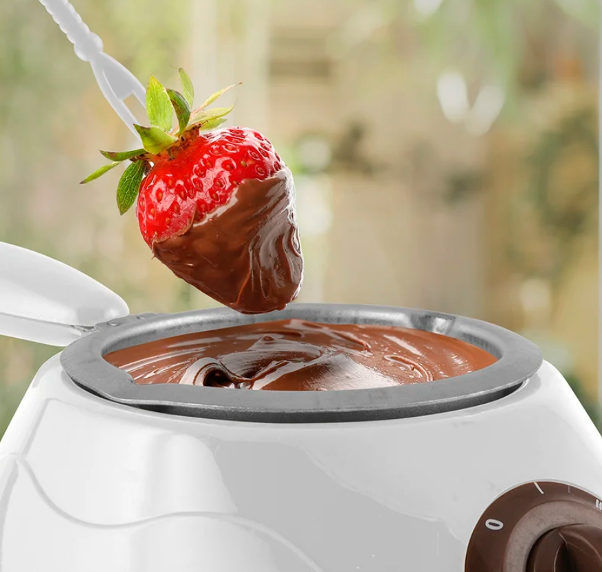 • Melts chocolate, caramel, butter for popcorn, or cheese for dipping