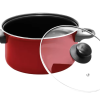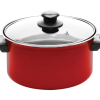 This kitchen pots and pans have a thick gauge, non-stick coating interior, and glossy exterior finish. The non-stick pan set is made from a thick carbon steel for durability and proper even heating. The carbon steel cookware has Bakelite handles and knobs. The handles make it easy to handle warm pots without risking burns. Better yet, their lids are made from tempered and vented glass. You can see what’s inside while you cook and maintaining the right temperature for your dish. Three different sized pots and one frying pan are included with three glass lids. The stock pot is 3 quarts. For proper use and maintenance, increase the heat of non-stick pans gradually when warming pan.
