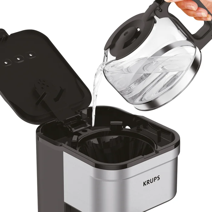 The KRUPS Simply Brew 5 Cup Coffee Maker is designed to make your morning routine a breeze. It features an easy to fill water tank and a sturdy 5-cup glass coffee pot with a no-drip spout that saves every drop for your cup. The Pause & Serve system allows you to pour a hot cup of coffee while brewing, without any mess. The coffee maker also has an automatic “Keep Warm” function that keeps your coffee warm after brewing. Its elegant stainless-steel design will seamlessly fit into your kitchen.