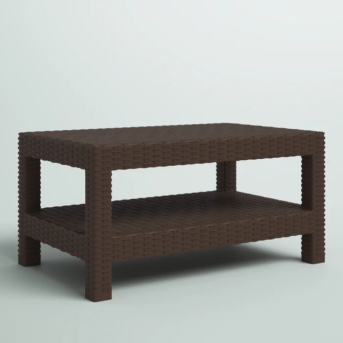Center your patio or poolside seating group in simple style with this understated coffee table This coffee table is naturally UV, chlorine, salt, and stain-resistant, while its lower shelf and openwork design lets this table double as a storage center and display stage. With a top crafted from commercial-grade material and a two-year warranty from the manufacturer, this coffee table is sure to last.