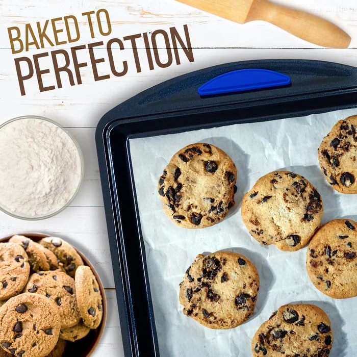 - Each sheet is designed with extra-wide, easy to hold handles that offer an outstanding grip when transferring from oven to surface