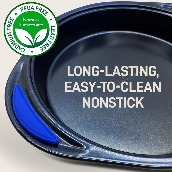 - Top-quality carbon steel ensures that these baking supplies remain rust-free while the nonstick coating allows food to slide on and off and eliminates the need for cooking spray. Unlike other nonstick cookware.