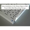 - Install into studs or flat surfaces with pre-drilled mounting holes on 16in centers.