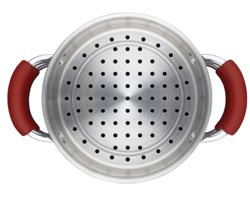 - Get a grip: Grippy handles are comfortable to grasp and double riveted for extra strength when using the steamer set as a pasta pot or lobster pot